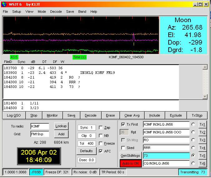 List of EME initials worked by IN3KLQ on 70 cm.