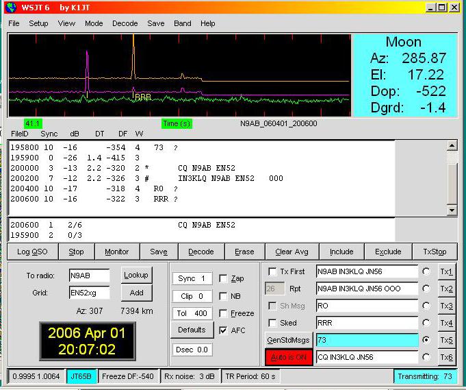 List of EME initials worked by IN3KLQ on 70 cm.